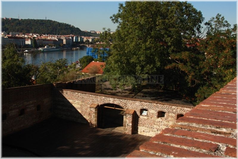 Vyšehrad - dělová bašta a výhled na Vltavu a Pražský hrad