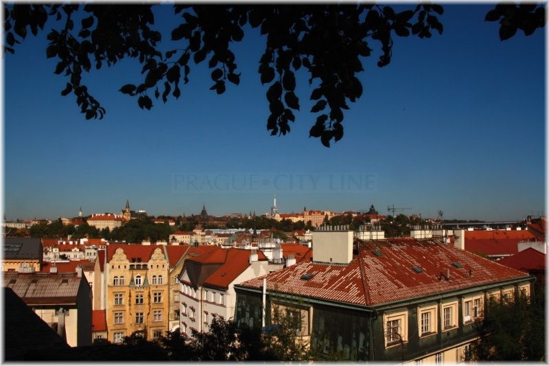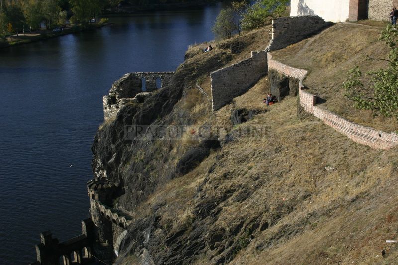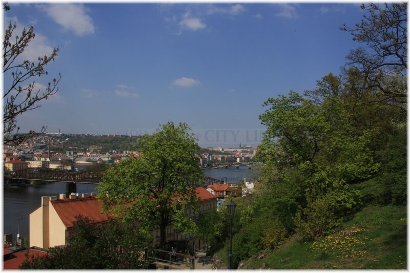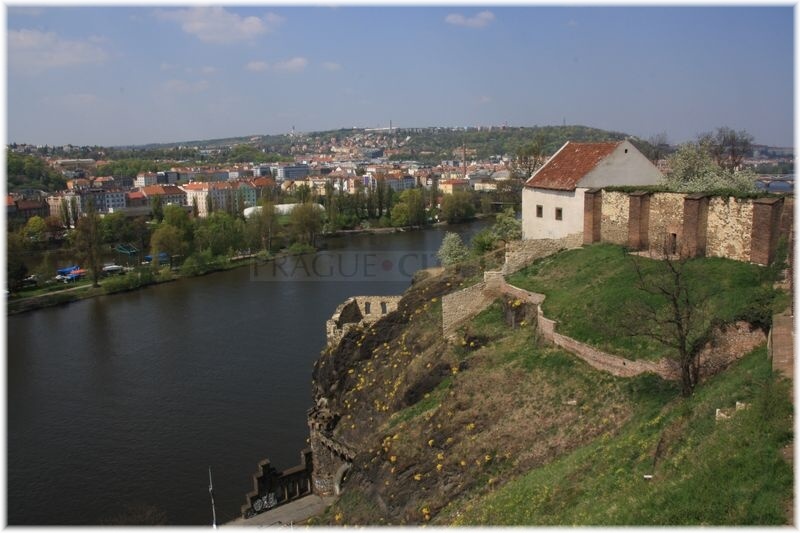 Vyšehrad - pohled na Vltavu a v pozadí Pražský hrad