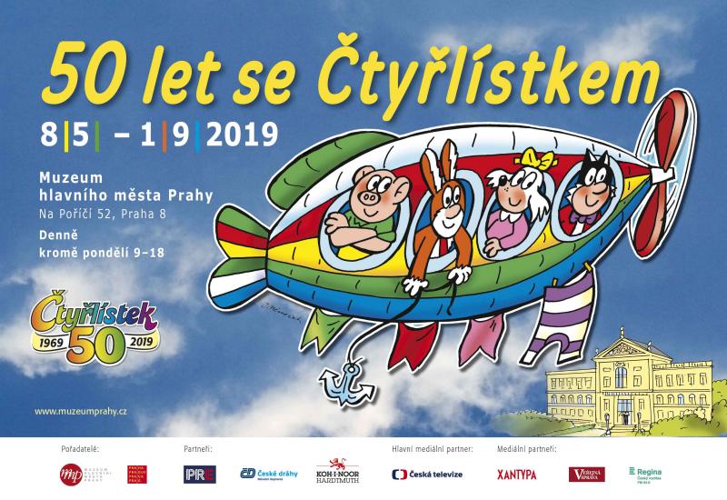 Výstava „50 let se Čtyřlístkem“ se koná u příležitosti padesátiletého výročí vydání prvního čísla komiksu Čtyřlístek.Základní linie výstavy je zaměřena na dětské publikum a pracuje s interaktivními prvky. Zve děti do světa dobrodružství a zapojí je do hry, jejímž cílem je představit současným dětem svět čtveřice postav z komiksu Čtyřlístek. Děti budou postupně procházet jednotlivými částmi výstavy a plnit různé úkoly zaměřené na rozvoj psychomotorických dovedností i intelektuálních schopností. Základní koncept výstavy tvoří dům Čtyřlístku situovaný do městečka Třeskoprsky. Dům je rozdělen na čtyři místnosti, z nichž je každá věnována jedné postavičce z komiksu. U domku bude i zahrada a Myšpulínova garáž, ve které bude umístěn „stroj času“. Instalace stroje času umožní malým návštěvníkům nahlédnout se Čtyřlístkem nejen do vesmíru, ale i do minulosti. V jednotlivých místnostech domku budou připravena další interaktivní pracoviště nezávislá na plnění úkolů ve hře. Mezi ně bude patřit Myšpulínova laboratoř, Fifinčina kuchyně a šatník, Bobíkova posilovna a Pinďova strašidelná stezka. Nakonec děti doputují k pokladu a získají zaslouženou odměnu.