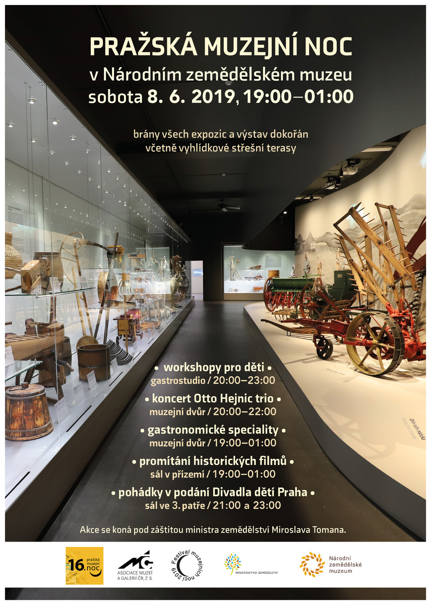 Akce přináší možnost navštívit a zažít pražská muzea a další kulturní instituce ve zcela ojedinělé atmosféře.Již pošestnácté můžete zakusit neopakovatelnou atmosféru návštěvy Národního zemědělského muzea ve večerních a nočních hodinách.