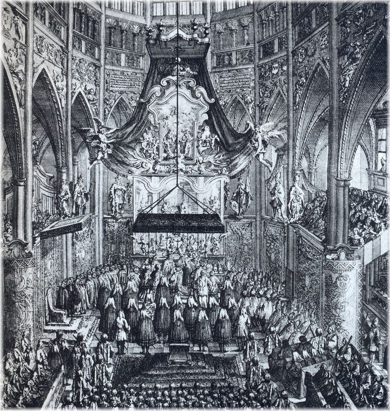 Poté, co byly přípravy dokončeny, mohl vyjít z královského paláce slavnostní korunovační průvod. Vysocí hodnostáři se seřadili s korunovačními klenoty u východu z kaple svatého Václava. Kaple a chrám svatého Víta byly vyzdobeny červeným a bílým suknem. Poté, co král vstoupil do chrámu, započal kněz modlitbu a rozezněla se slavnostní hudba. Pověření lidé začali postupně přinášet korunovační klenoty