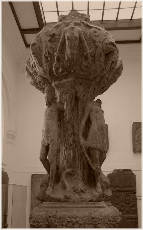 Dominantním prvkem byl však sloup, nacházející se uprostřed díla. Ten byl ozdoben sochami Jupitera, Diany, čtyř vodních panen a sochami několika vodních polobohů, chrlících vodu. Nad těmito sochami se původně nacházela ještě jedna, vyobrazující boha Tritona. Ta však se však během dlouhé historie kašny ztratila. Další částí kašny byl erbovní sloup na jejím boku, kterému dominovala socha boha Neptuna.. Po stranách sloupy se nacházel znak hlavního města Prahy, erb purkmistra Krocína a socha svatého Václava.
