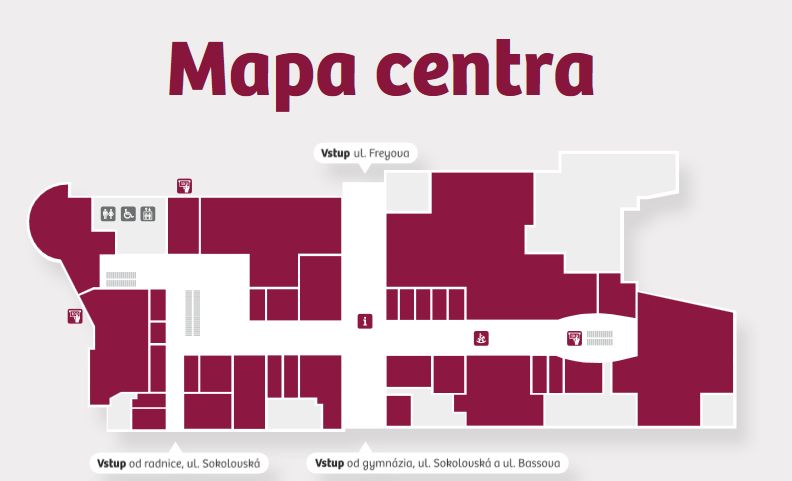 V centru najdete infor-mační stránek, který je umístěný hned v přízemí mezi vchody z Freyovy ulice a ulice Sokolovské.