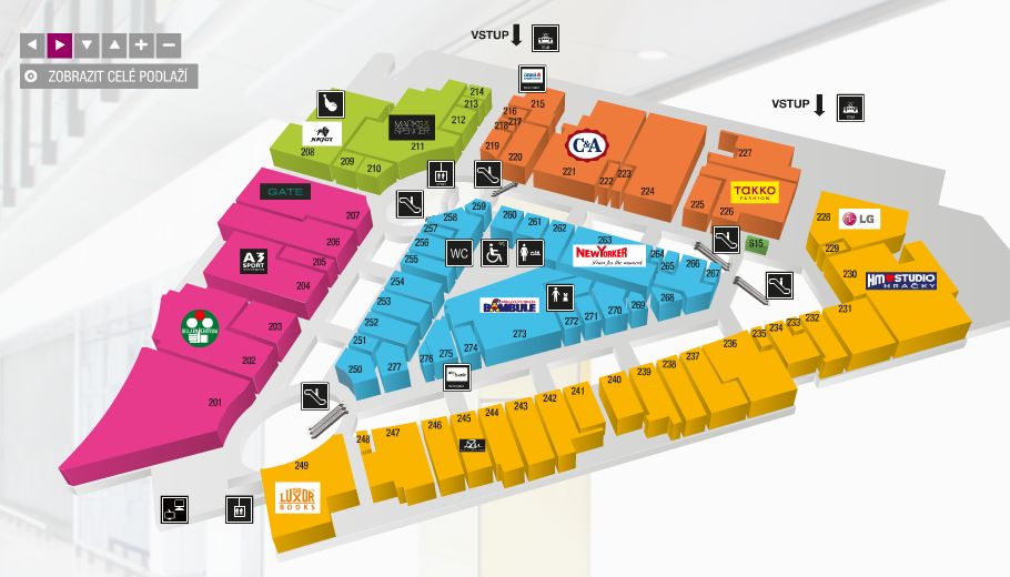 Toalety naleznete v obou patrech centra. V obou patrech jsou v centrální části centra.
