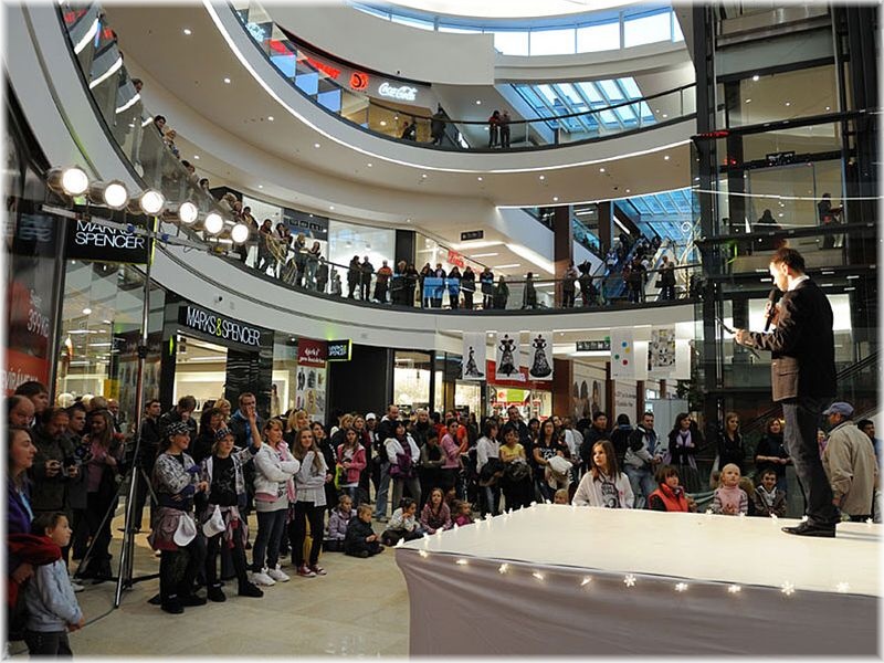 Galerie Harfa patří k rozlehlejším cen-trům. nabízí 160 obchodů na třech podlažích o celkové výměře 49 tisíc m².