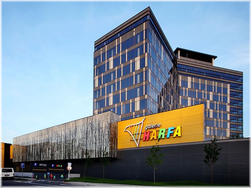 Galerie Harfa patří k rozlehlejším cen-trům. nabízí 160 obchodů na třech podlažích o celkové výměře 49 tisíc m².