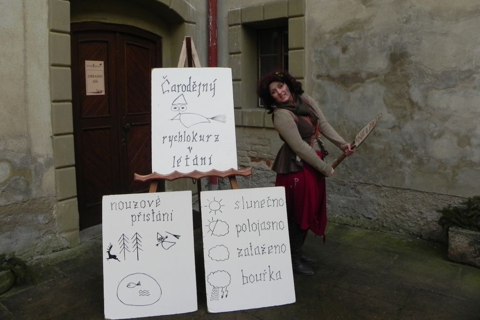 Než zavítáte na okruh Hradní pohádková půda, naučíte se pod vedením zkušené čarodějnice umění čarodějného létání na koštěti. Na půdě uvidíte i letošní novinku – Obří rubínové draky Rubijány. Navštívíte čarodějnice různých kategorií, kouzlobabky, strašidláckou kuchyni, čarodějnou prádelnu, mydlírnu a garderóbnu, pohádkový časostroj, draky Mocjeďáky, strašidýlka a pravou strašidláckou hospodu.
