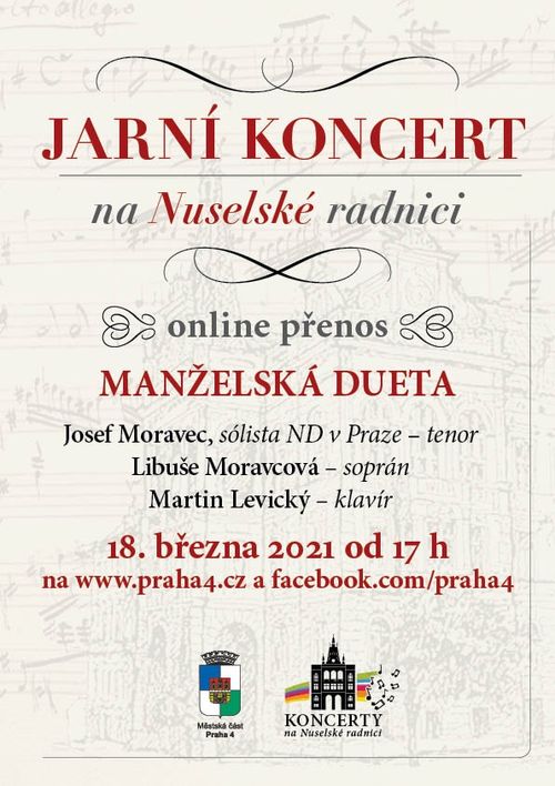 Streamovaný přenos tradičního hudebního vystoupení z cyklu Jarních koncertů na Nuselské radnici „Manželská dueta“