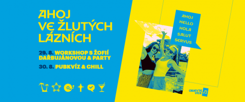 Konec prázdnin.Jsi v Praze a máš už dost nudného léta? Tak neváhej a navštiv Žluté Lázně. Čeká tě spousta zábavy. DJs, workshop s Žofií Dařbujánovou, Cornhole, fotbálek, Jenga, pubkvíz a mnoho dalších super věcí. Tak neváhej a doraž!
