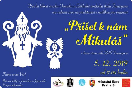 Dětská lidová muzika Osminka a Základní umělecká škola Taussigova vás srdečně zvou na představení s nadílkou pro veřejnost „Přišel k nám Mikuláš.“