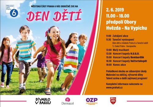 Akce pro veselé děti a jejich rodiče k oslavě Dne dětí. Zahrají: Kapela HUGO, BomBarďák, Kapela Večtvrtekvpět. Taneční vystoupení Dům dětí a mládeže Praha 6 nebo Sandra Dance z TJ Sokol Hanspaulka. Pohádková stezka a mnoho dalšího!