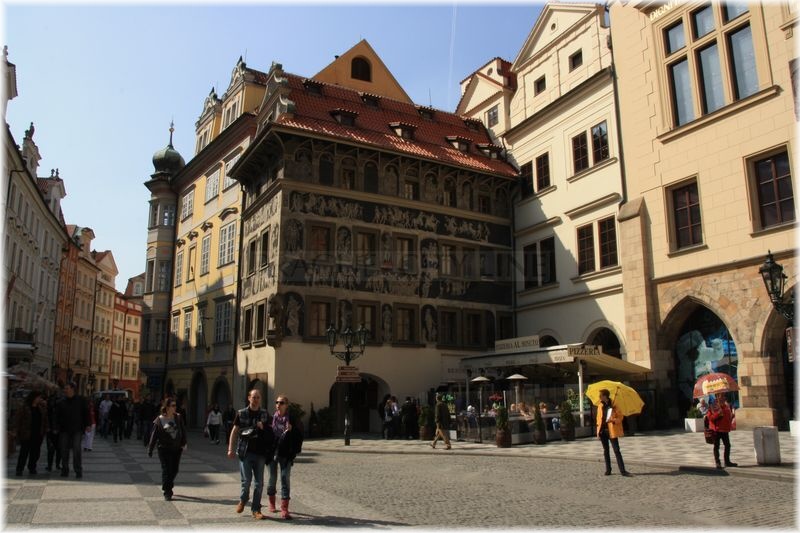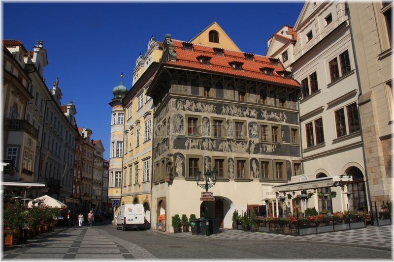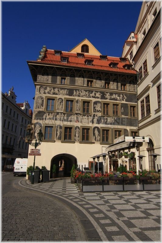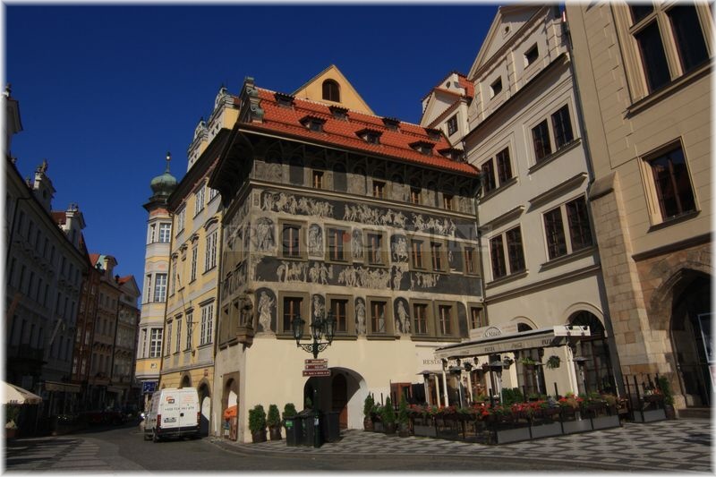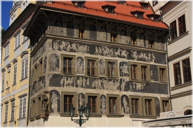 Během rekonstrukce domu v období baroka došlo při stavebních pracích k zabílení sgrafitové výzdoby. Nové stavební úpravy se uskutečnily ve 20. letech 20. století, kdy byla pod dosavadní omítkou nalezena ona vzácná renesanční výzdoba fasády ze šestnáctého století. Následně došlo k odstranění bílé fasády, a proto dnes při procházkách po Staroměstském náměstí můžeme obdivovat překrásnou renesanční architekturu.