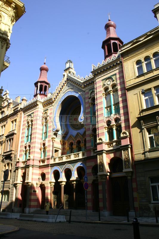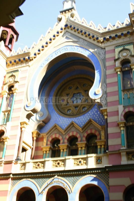 Jeruzalémská (Jubilejní) synagoga – s pokladem, se kterým se nemůže chlubit žádný jiný židovský chrám na světě. Synagoga je sice nejmladší synagogou, nacházející se na území pražské Židovské obce, zato je mnohem větší, než všechny ostatní. Nenajdeme ji nikdy jinde, než na Novém Městě v Jeruzalémské ulici. Jubilejní synagoga byla postavena v maurském slohu, jako náhrada za Cikánovu, Novou a Velkodvorskou synagogu, které byly zbořeny v rámci asanace, tedy zlepšení hygienických podmínek Židovského města. Stavba synagogy byla dokončena v roce 1906 podle plánů slavného vídeňského architekta, zasloužilého a zkušeného stavitele synagog Wilhelma Stiassneho.