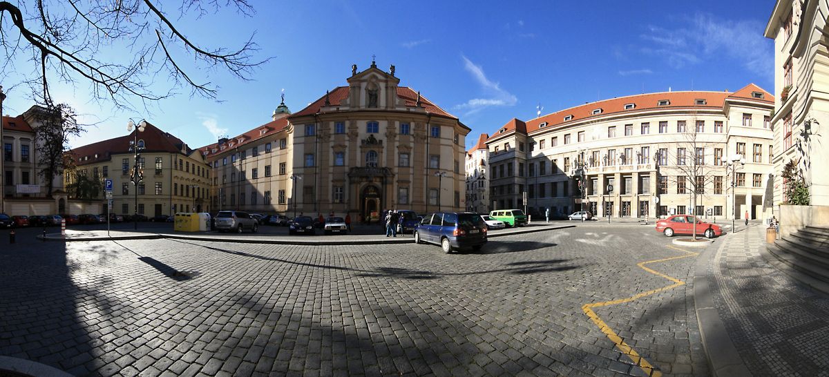 Mariánské náměstí a Klementinum – vstupni brána – panoramatická fotografie