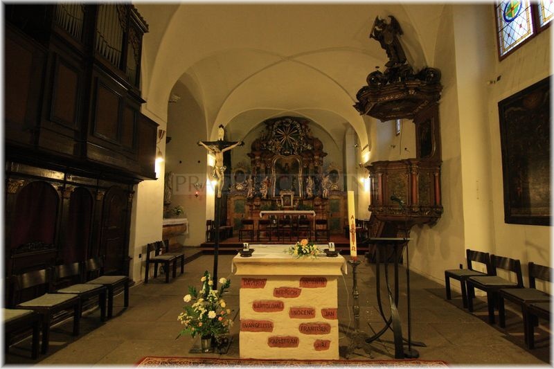 se proslavil v době husitské, kdy zde kázal významný husitský kazatel a reformátor Jan Želivský. Vřava husitských válek se však nevyhnula ani této památce, a protože nebyly prostředky a její opravu, začala stavba pomalu chátrat. V roce 1606 se komplex dočkal nových majitelů – řádu bosých františkánů. Ti neprodleně začali s rekonstrukcí stavby. Gotická klenba, která se v kostele zřítila, byla nahrazena renesanční konstrukcí. Rekonstrukce se dočkal i přilehlý klášterní komplex. Při klášteře byla vybudována i překrásná zahrada, kde měli františkáni pro vlastní potřebu pěstovat užitkové plodiny. Zahrada se postupně proměnila na park, v jehož středu byla vystavěna kaple. Zahrada je v současnosti plně přístupná veřejnosti. Kromě okrasných dřevin, růží a soch je zde umístěno i dětské hřiště.