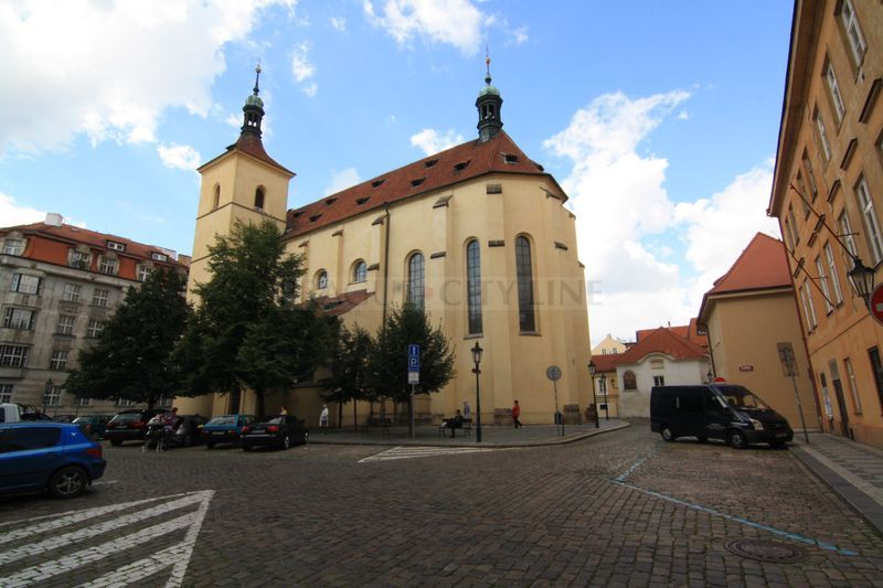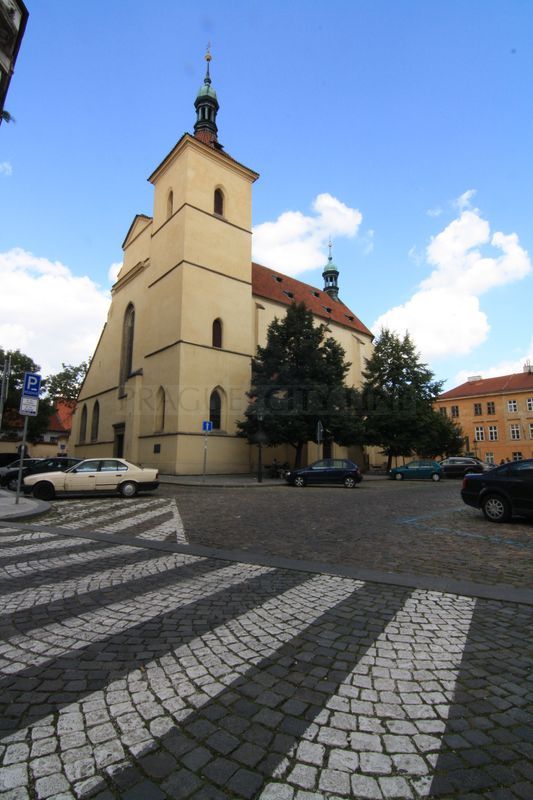 Po nějakou dobu spadal kostel ke špitálu Anežského kláštera, který se nacházel v nedaleké blízkosti. O založení kostela se vedly mnohé spekulace. Patrně byl však založen řádem německých rytířů. Dříve, tedy v místech současného náměstí, kostel obklopoval hřbitov. Ten zanikl až v roce 1832. Ve čtrnáctém století byl kostel vystavěn jako trojlodní bazilika v místech, kde původně stával románský kostelík.