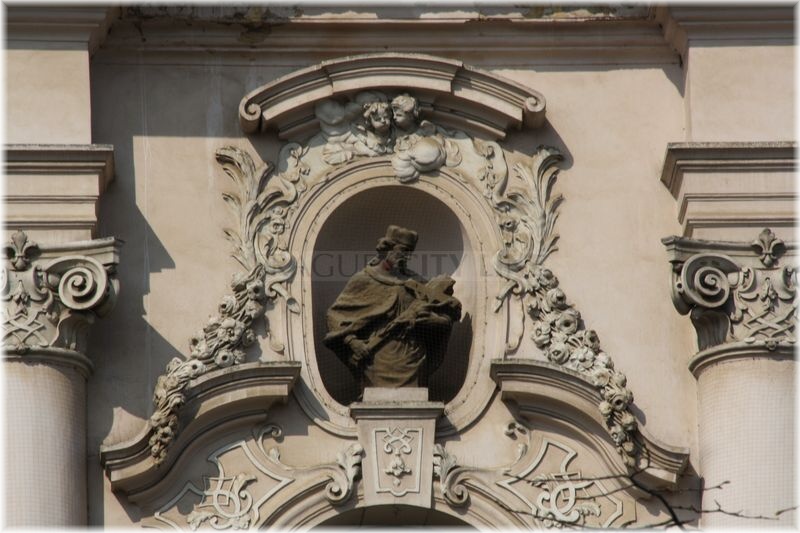 Vedlejší budova, která je přimknuta ke kostelu ze strany Kafkova náměstí stojí na místě bývalého kláštera benediktinů, a je na něm umístěna pamětní deska, která připomíná, že zde se narodil známý český německy píšící spisovatel Franz Kafka.