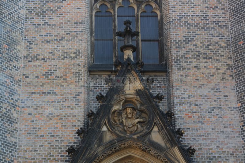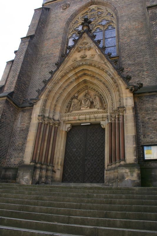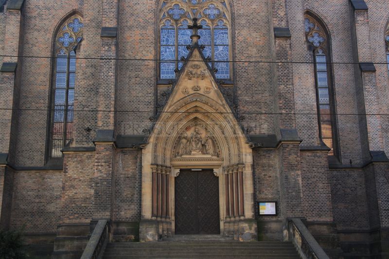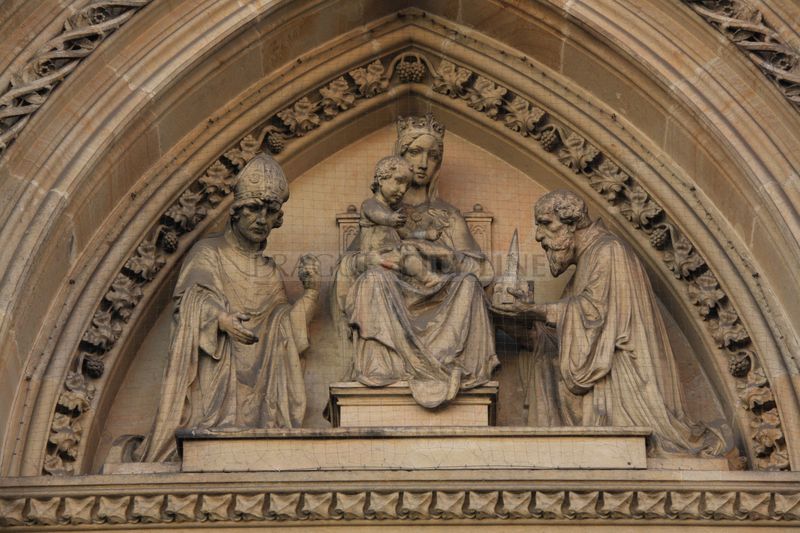 Nyní se společně podíváme do interiéru kostela, do kterého se dá vstoupit dvěma schodišti. Jeden na severní a druhý na západní straně stavby. Nad hlavním vchodem v části severní, je umístěn velice vzácný tympanon. Jedná se prostor ve štítu portálu, ve kterém je umístěn reliéf Madony s Dítětem, které zdejší patron Svatý Prokop podává model kostela. Pokud se rozhodnete vstoupit do chrámu bočním vchodem, nezapomeňte si prohlédnout také sochu svatého Vojtěcha, který zve návštěvníky do chrámu. Obě díla nad vchody jsou tvorbou Josefa Pekárka, který byl žákem Josefa Václava Myslbeka.