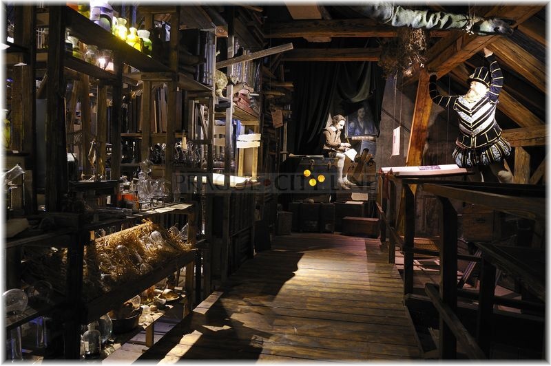 Unikátní částí muzea je dlouhé dřevěné schodiště, které údajně navrhoval sám Kelley. Měla to být jakási spirála života, která měla vést k omládnutí. Vám umožní cestovat v čase do 16 století. Schody nás zavedou do alchymistického kabinetu, kde jsou uskladněny všechny nezbytné pomůcky pro práci. Ve skladu je i část nekonečné knihovny alchymisty Johna Dee, který působil na dvoře anglického krále Edvarda VI. Potkáte zde ovšem i Williama Shakepspeara. Co zde slavný dramatik dělá? To Vám rád poví průvodce, který se vás ujme hned u vstupu.