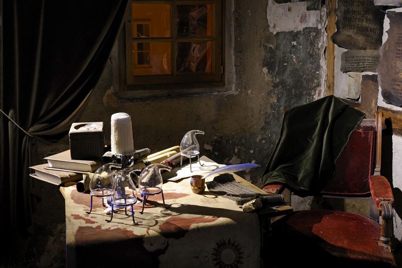 O tři roky mladší je Muzeum alchymistů a mágů staré Prahy, jehož expozice je přímo v domě historicky spjatém s pobytem slovutného alchymisty magistra Edwarda Kelleyho v Praze. Při stoupání Nerudovou ulicí k Hradu se tedy rozhodně nezapomeňte na chvilku zastavit, sejít po schodech Jánského vršku a navštívit Dům U osla v kolébce. I tady se zastavil čas a to v době císaře Rudopfa II, ve zlaté době pražských alchymistů. Když vystoupáte po jedněch z nejstarších dřevěných schodišť v Praze do Kelleyho věže, najdete tam jeho alchymistickou půdní laboratoř. Čeká vás toho však mnohem víc. Kromě autentické atmosféry tajné laboratoře potkáte samotného magistra Kelleyho, jeho guru Johna Dee, samotného Císaře Rudolfa II, ale i jednu postavu, kterou byste tu nečekali – Williama Shakespeara. Co tu dělá? To se dozvíte v expozici. Stejně jako se dozvíte, co to vůbec alchymie je, něco o slavných Pražanech nejen rudolfínské doby, kteří holdovali alchymii a v místnosti z Faustova domu s dírou ve stropě potkáte kromě alchymistů i mágy, jako je kouzelník Žito, nebo proslulý doktora z hor – Eleazar Kittel. To vše najdete v přízemní části muzea. Tady svoji pouť muzeem začnete, ale přes dvůr ve alchymistické hospůdce Kellyxír ji jistě zakončíte, aby byl pro vás návrat do 21. století o něco přijatelnější.