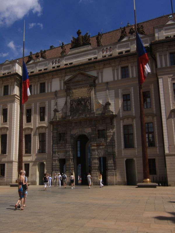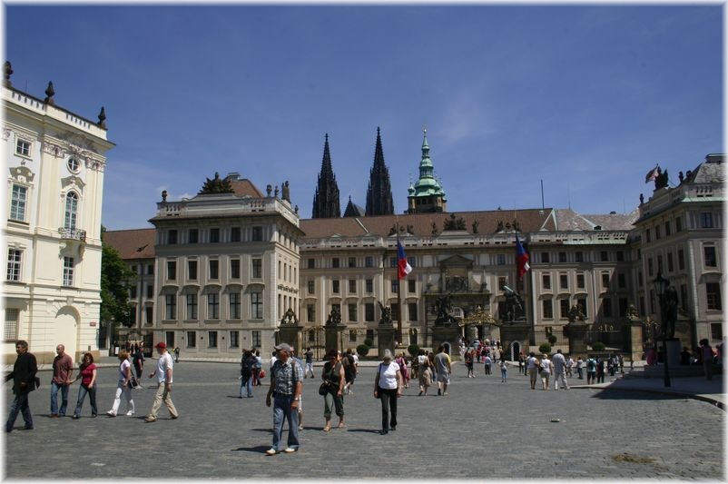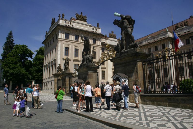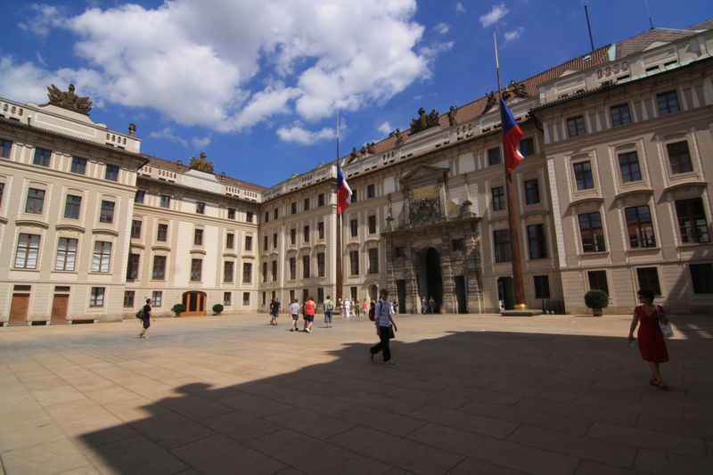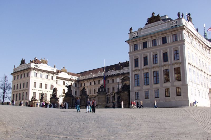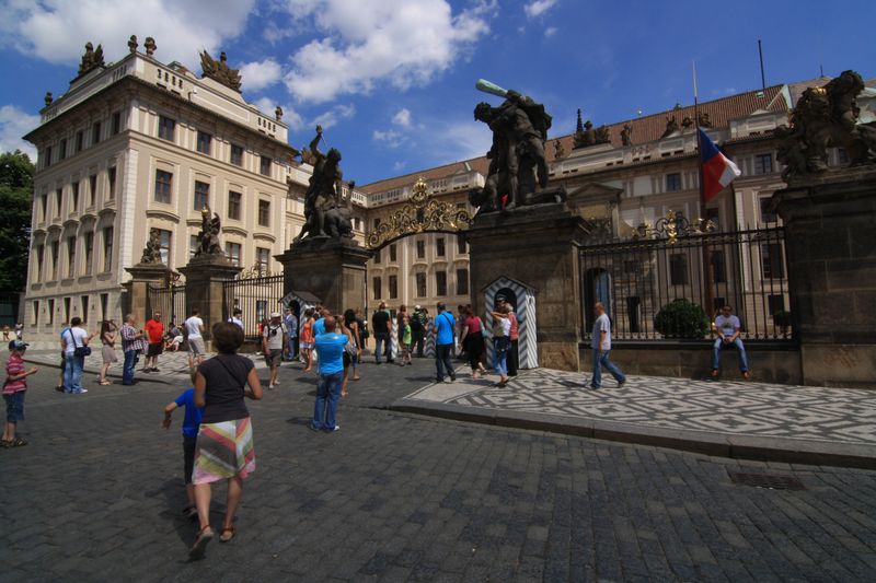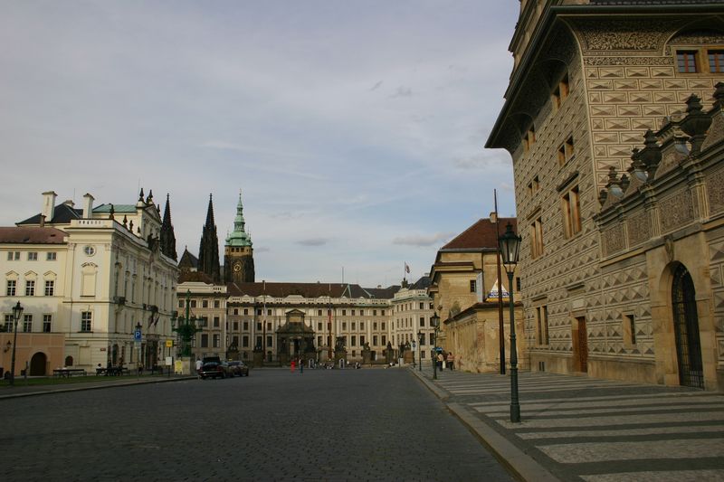Naši výpravu za krásami Pražského hradu započneme na Hradčanském náměstí, které se rozprostírá přímo před hlavním průčelím Hradu. Nejen, že nám umožňuje vstup na I. nádvoří, ale kromě nádherných historických domů nám poskytuje, díky hradnímu ochozu na jižní straně, překrásný a nezapomenutelný výhled na celou Prahu. Vydejme se tedy společně napříč náměstím, které již několikrát bylo centrem mnoha událostí, směrem k hlavní bráně Pražského hradu.