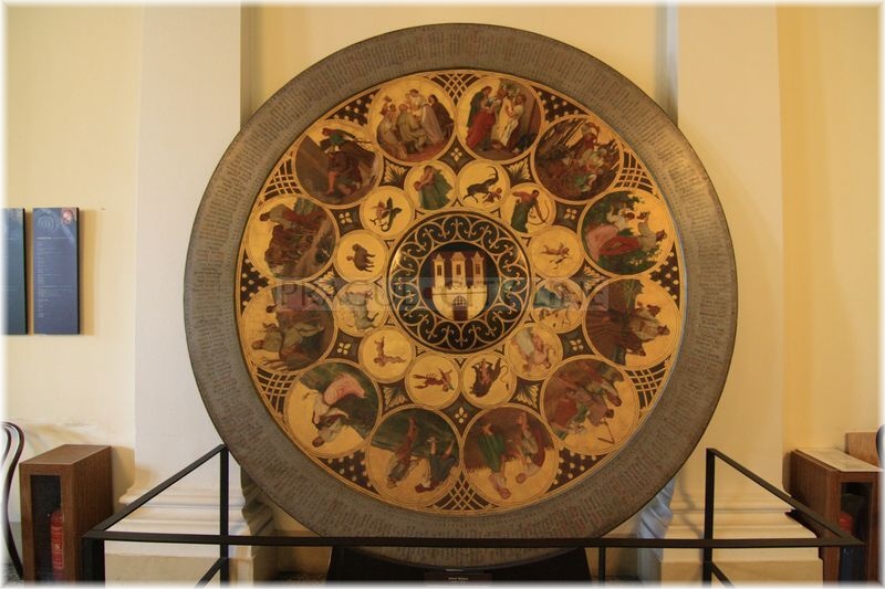 Ale zpět k největší části kalendáře. Kolem dokola jsou umístěny obrázky jednotlivých měsíců, kdy každý z nich představuje určitý obrázek s venkovskou tématikou. Pod nimi jsou umístěny menší obrázky, představující jednotlivá znamení zvěrokruhu. Na okraji velkého kruhu je umístěno církevní kalendárium, tvořené tři sta pětašedesáti paprsky, na kterých jsou uvedena jména světců a veškeré pevné svátky. Každý den se tak malinká ručička v horní části kalendáře, pootočí o jeden z těchto paprsků.