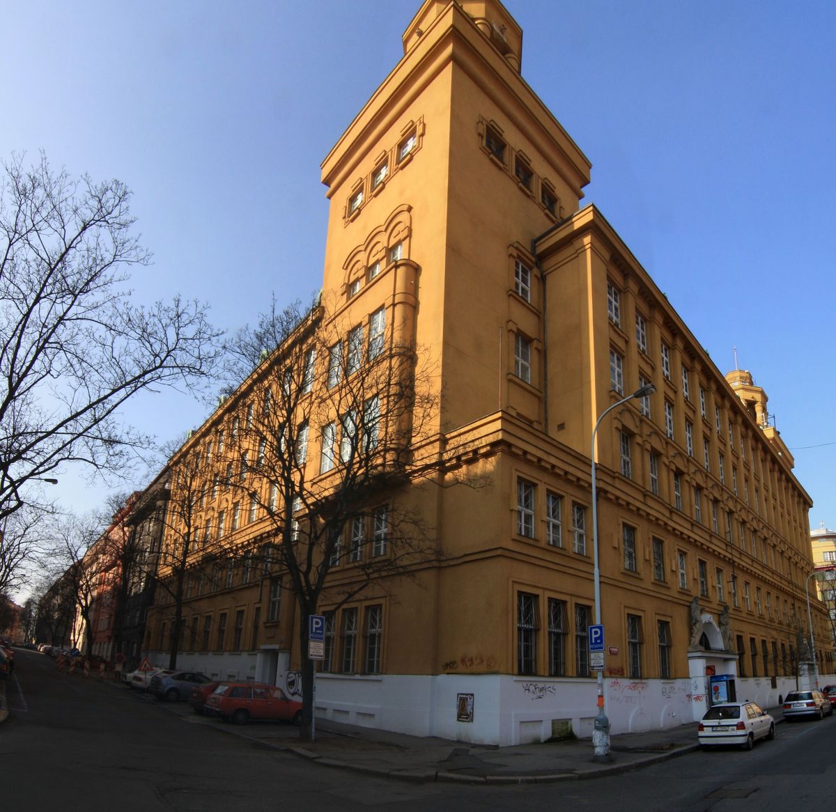 Telefonní ústředna ve Fibichově ulici – panoramatická fotografie
