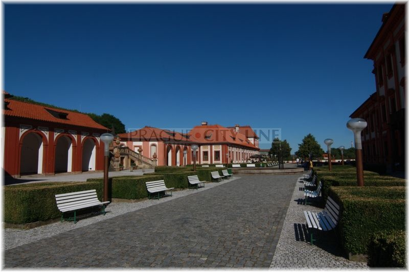Pozoruhodná je také překrásná zahrada italského typu, která je plná fontán, vzácných terakotových váz a další sochařské výzdoby.  Dále se v zahradě nachází habrové bludiště. Na terasách zámku jsou umístěny bysty, znázorňující slavné římské císaře. Zámek má celkem tři křídla, která společně utvářejí půdorys písmene U. V roce 1922 připadlo sídlo rodu Šternberků státu. Rozsáhlá rekonstrukce potkala zámek v letech 1977 – 1989. Od té doby jsou zde vystaveny sbírky českého malířství 19. století z expozic Galerie hlavního města Prahy