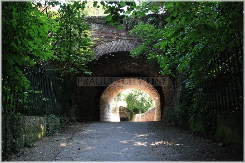 Odtud budeme pod železničním mostem pokračovat po Rašínově nábřeží dalších dvě stě metrů, kdy cesta po nábřeží končí. Zde vystoupáme vzhůru, půjdeme pár minut po chodníku, který je vyhrazení pro pěší a cyklisty a poté projdeme Vyšehradským tunelem. Tunel zdobený věžičkami prochází skrz vyšehradskou skálu. Od tunelu pokračujeme po chodníku kolem menšího přístavu pro lodě. Držte se raději u zábradlí, protože cesta patří mezi oblíbené cyklotrasy, a proto zde projíždí mnoho sportovců. Po osmi minutách chůze přijdeme k překrásné novoklasicistní budově.