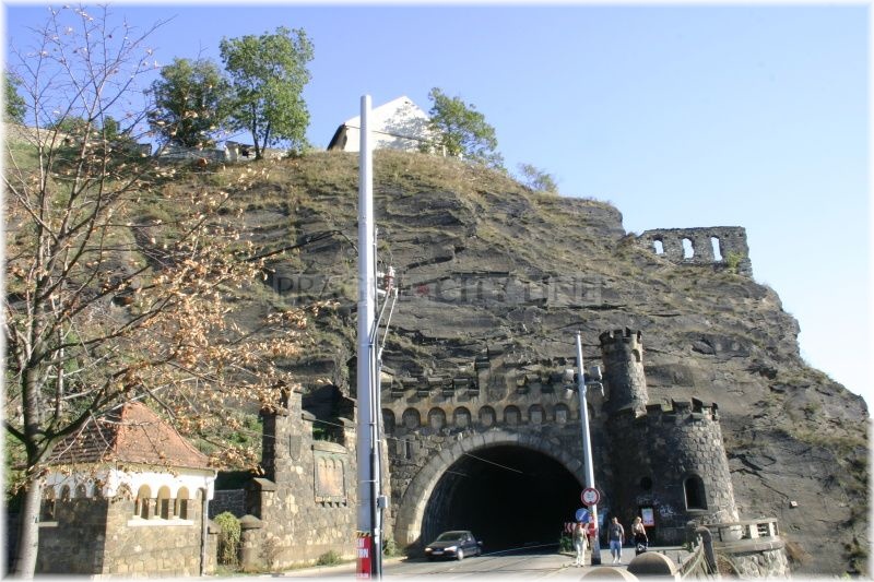 Odtud budeme pod železničním mostem pokračovat po Rašínově nábřeží dalších dvě stě metrů, kdy cesta po nábřeží končí. Zde vystoupáme vzhůru, půjdeme pár minut po chodníku, který je vyhrazení pro pěší a cyklisty a poté projdeme Vyšehradským tunelem. Tunel zdobený věžičkami prochází skrz vyšehradskou skálu. Od tunelu pokračujeme po chodníku kolem menšího přístavu pro lodě. Držte se raději u zábradlí, protože cesta patří mezi oblíbené cyklotrasy, a proto zde projíždí mnoho sportovců. Po osmi minutách chůze přijdeme k překrásné novoklasicistní budově.